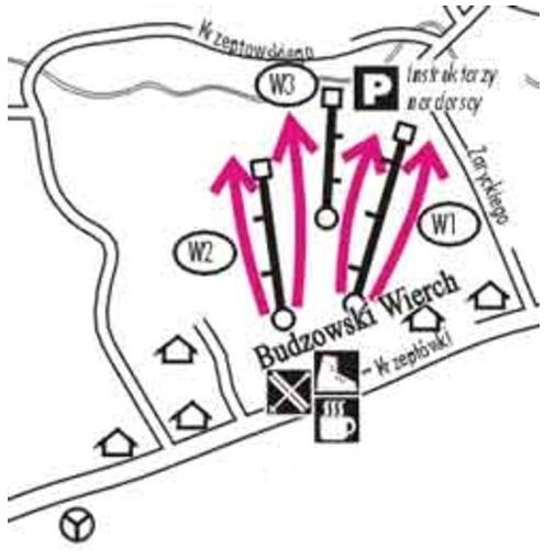 Mapa tras ośrodka Wyciągi narciarskie Budzowski Wierch